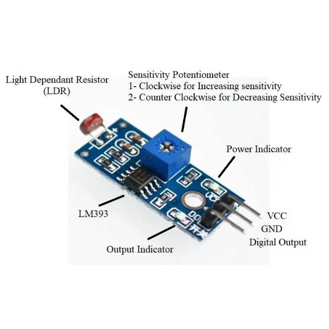 یک سنسور ساده برای تشخیص شدت نور محیط است که با تغییر میزان نور، ولتاژ خروجی آن تغییر میکند. این ماژول با قیمت مناسب، مصرف کم و نصب آسان گزینهای عالی برای کنترل خودکار روشنایی و پروژههای آموزشی و هوشمند است.