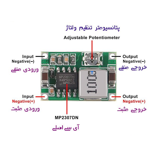 یک مبدل ولتاژ کوچک و پرکاربرد است که ولتاژ ورودی را با راندمان بالا به ولتاژ پایینتر و قابل تنظیم تبدیل میکند. این ماژول با ابعاد بسیار کوچک، قیمت مناسب و مصرف کم گزینهای عالی برای پروژههای فشرده و باتریخور است.